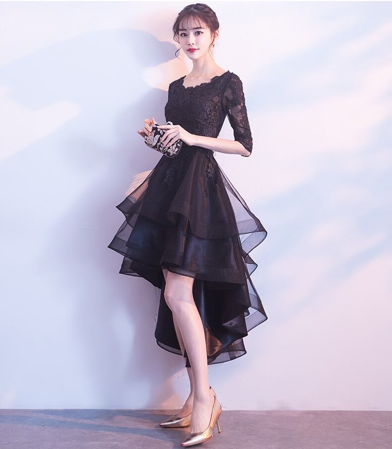 新作 フォーマル レディースドレス ブラック イブニングドレス バックロングドレス フィッシュテールドレス ミニドレス ロングドレス ブラック オールシーズン ハイエンド パーティー リッチ感 高級感 ハイセンス エレガント 上品 気品 レース シアーレース ティアード 5分袖 ミッドウェスト ジッパー 無地 ラウンドネック 大人かわいい シック 好印象プリンセスライン S M L XL 2XL 3XL