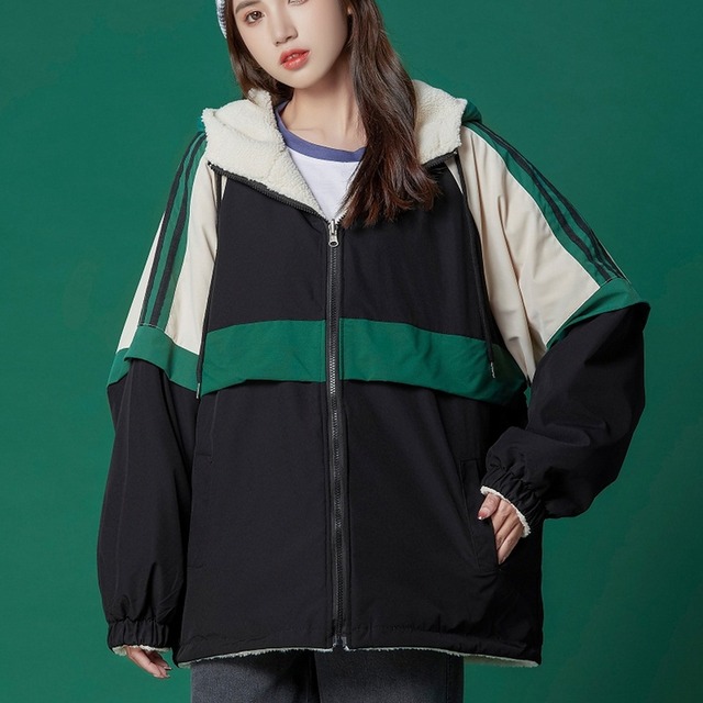 アウター ジャケット レディース リバーシブル ウィンドブレーカー パーカー フーディー ブルゾン 2way ボアジャケット もこもこアウター ボアブルゾン ボリューム袖 フード付き フリース ボア 異素材MIX 大人可愛い きれいめ 上品 レトロ 大人女子 こなれ感 マニッシュ キュート ガーリー ルーズ 秋 冬 通勤 通学 お出かけ アウトドア 体型カバー 普段使い 暖かい 防寒 ビッグシルエット オーバーサイズ ゆったり 黒 ブラック ブルー ニュアンスカラー
