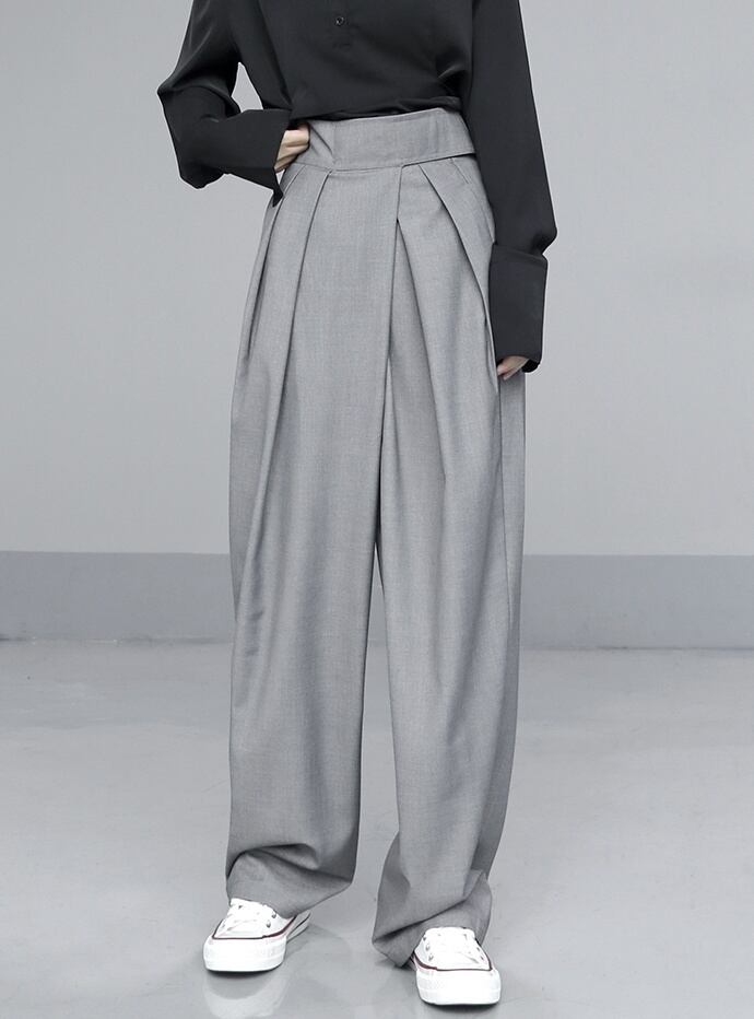 パンツ レディース ワイドパンツ グレー ブラック ダークブラウン 灰色 黒 茶色 ロングパンツ ズボン 10代 20代 体型カバー カジュアル ゆったり 女性 春 秋 冬 軽い ポケット付き マジックテープ オシャレ かわいい かっこいい お洒落
