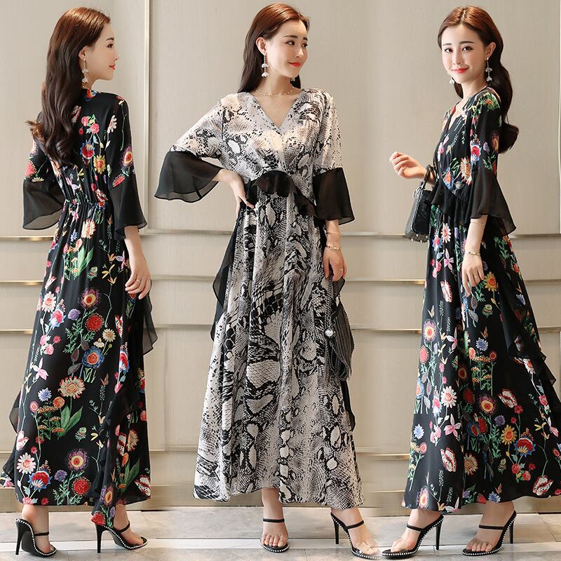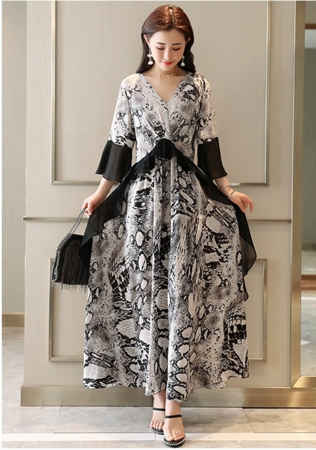 レディース ワンピース ワイドパンツ ロングスカート マキシ丈 7分袖 フレアスリーブ Vネック フレア ハイウエスト ウエストゴム 透け感 シースルー 大人可愛い きれいめ 大人 上品 おしゃれ お洒落 キュート エレガント 主役級 花柄 小花柄 ヒョウ柄 春 夏 二次会 10代 20代 30代 レディース 女性用 パーティー イベント リゾート 美脚 M L XL 2XL 3XL 4XL 白 ホワイト 黒 ブラック