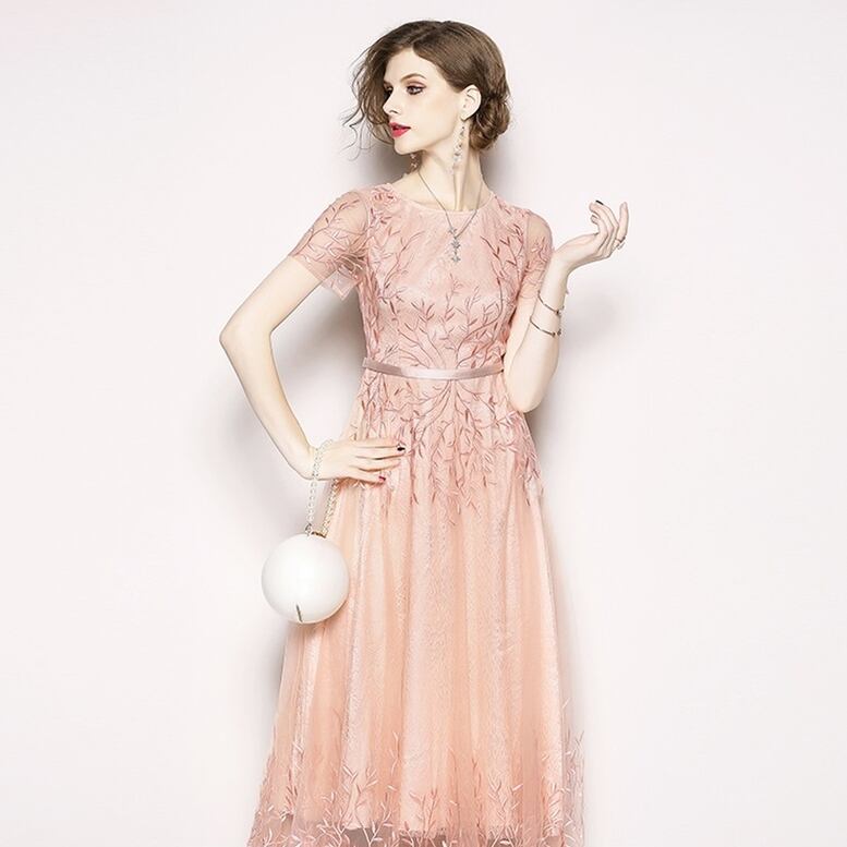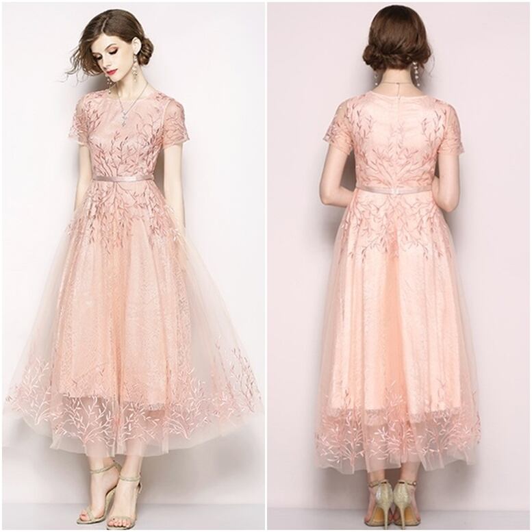 ドレス ワンピース レディース ロングワンピース 刺繍レース フレアワンピース チュール シフォンドレス ワンピドレス ひざ下 ミモレ丈 半袖 ラウンドネック スリム ハイウエスト 透け感 シースルー 大人可愛い きれいめ 上品 おしゃれ レトロ エレガント フォーマル 花柄 小花柄 フラワー 春 夏 秋 冬 結婚式 二次会 披露宴 オフィス ビジネス OL 通勤 学生 通学 デート お出かけ パーティー イベント 女子会 体型カバー 美脚 脚長 インスタ映え ゆったり ピンク ニュアンスカラー