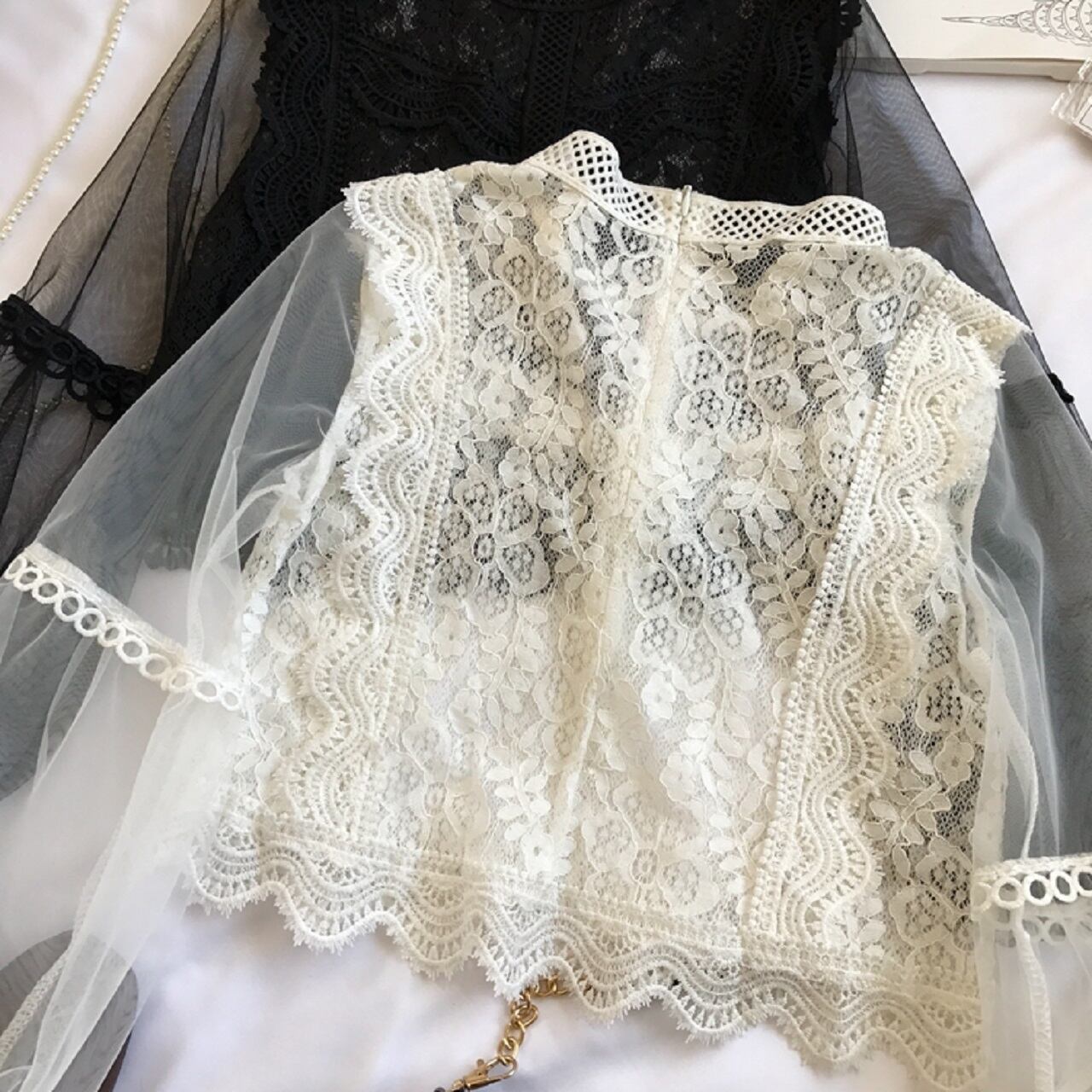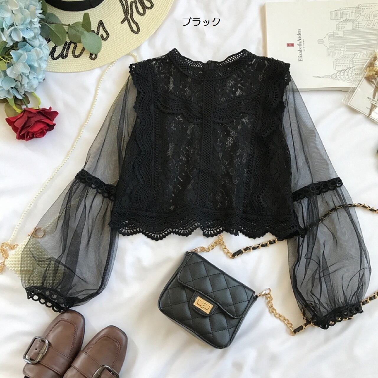 ラウンドタイプのスタンドカラー レースシアーブラウス☆