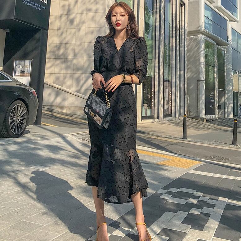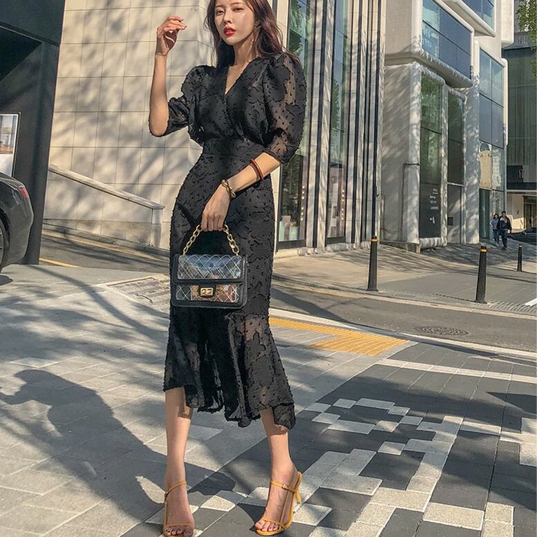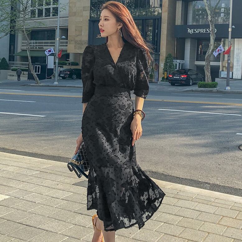 ワンピース レディース カシュクールワンピース マーメイドワンピース レース 花柄 刺繍 ドット Vネック ひざ下丈 スリム ハイウエスト フリル 7分袖 透け感 シースルー ウエストマーク ワンピドレス 大人可愛い きれいめ 上品 レトロ エレガント フォーマル 春 夏 謝恩会 結婚式 二次会 披露宴 セレモニー オフィス ビジネス OL 通勤 学生 通学 デート お出かけ パーティー イベント 女子会 体型カバー 黒 ブラック