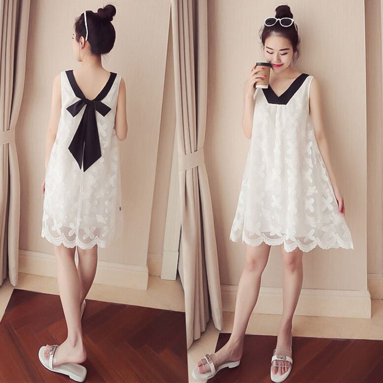 配色の前後Vネックと同素材の背中の大きめのリボンがクラシカルな1枚です