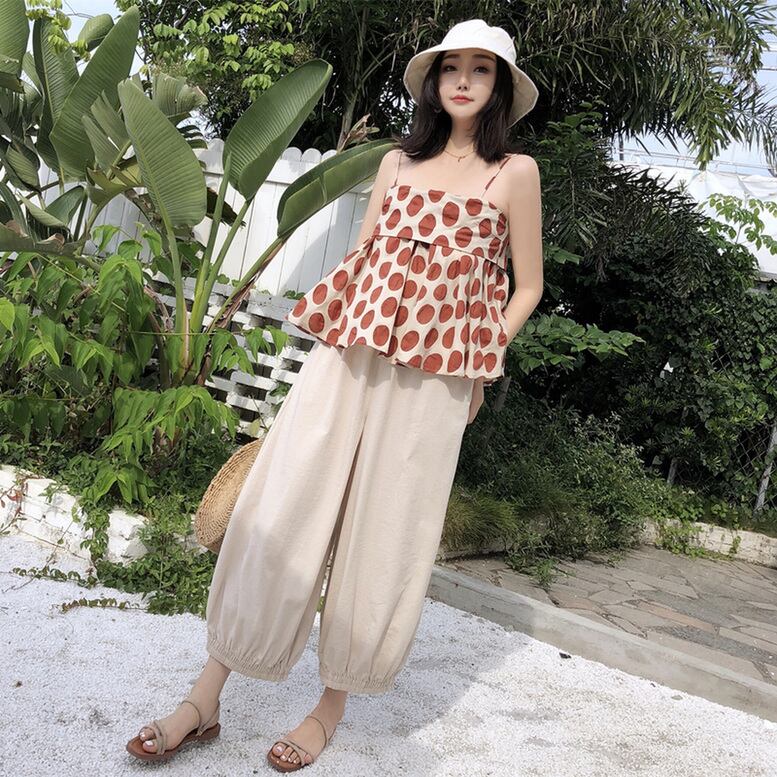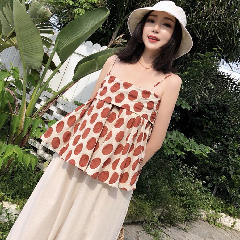 キュートなドット柄が目を惹くカシュクールワンピースとペプラムキャミソールのセットアイテム