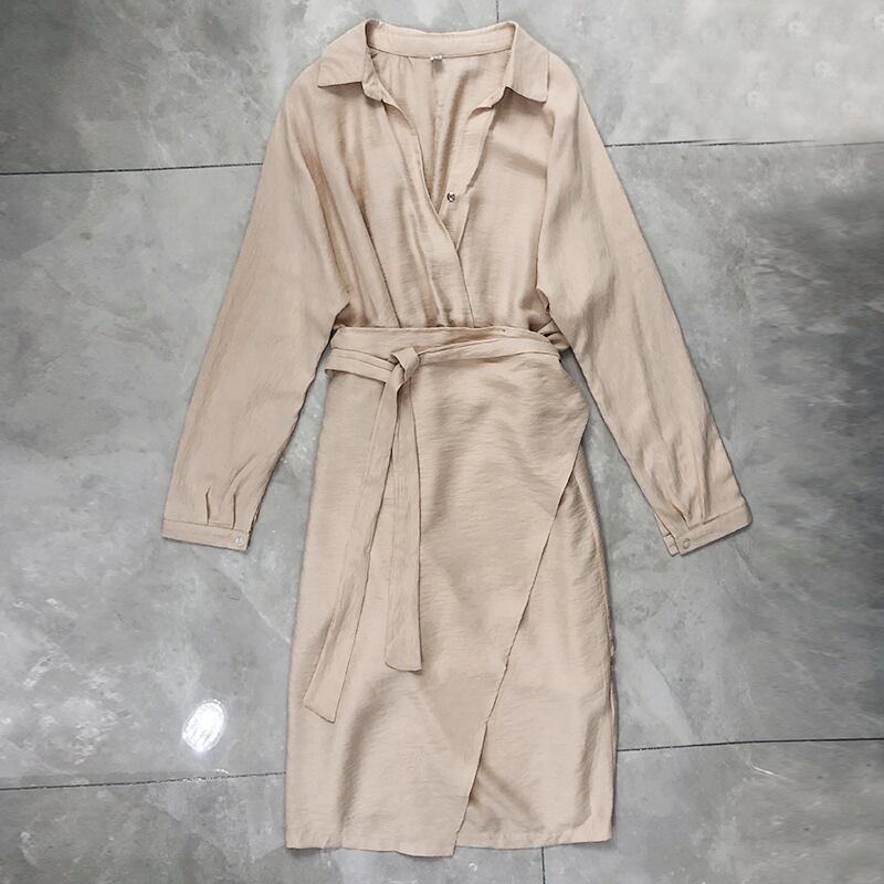Vネック 長袖 ドレスシャツ ウエストポイント スリム スカート フレンチ ルーズ ワンピース アンニュイ 春 ドレープ感 シック ストレート プルオーバー ハイウエスト ミドル丈 アシンメトリー ラフ カジュアル 通勤 通学 OL 学生 好印象 カジュアルモダン 20代 30代 デイリー こなれ感 サマ見え カッコイイ 体型カバー活動的 細見え ヤセ見え スッキリ見え スタイルUP 華奢見え 若見え スタイリッシュ スマート アプリコット ダークブルー ワンサイズ