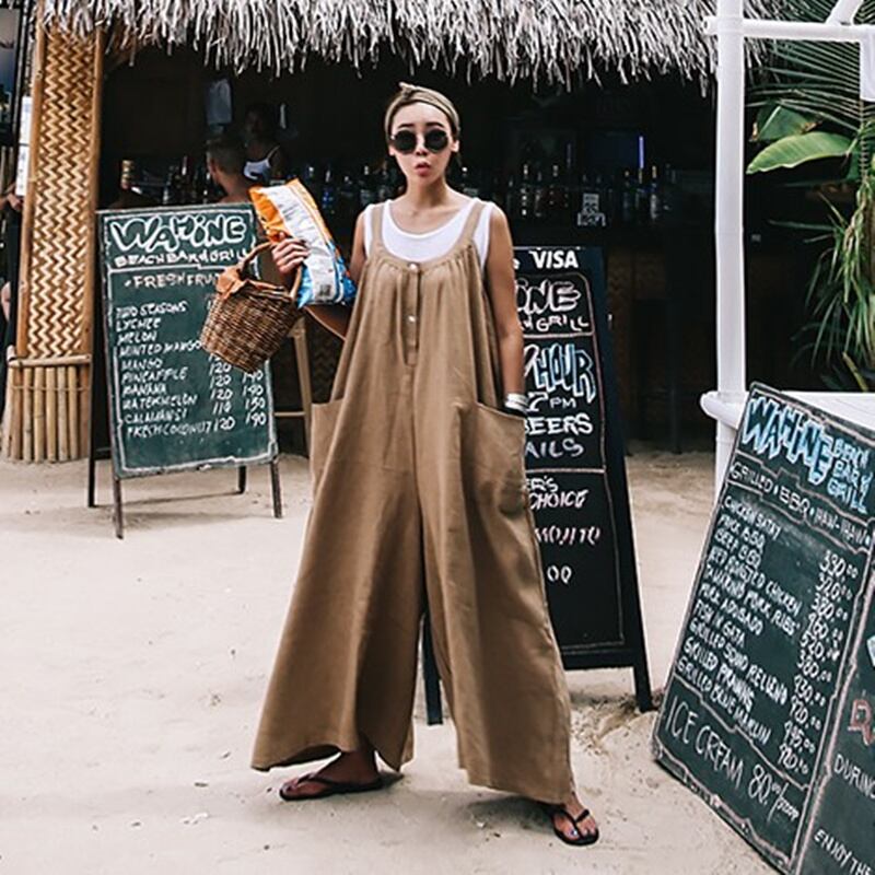 ワイドレッグパンツ カジュアル ストラップパンツ ビッグシルエット ゆったり 大きい スリングパンツ ナチュラルシルエット コットンリネン 9 分パンツ S M L XL ブラック コーヒー色 韓国 ビッグポケット 休日 レディース リゾートウェア 大人女子 映えItem 存在感 目立つ 大人女性 足長効果 華奢見え 細見え ヤセ見え サマ見え こなれ感 スッキリ見え 素朴