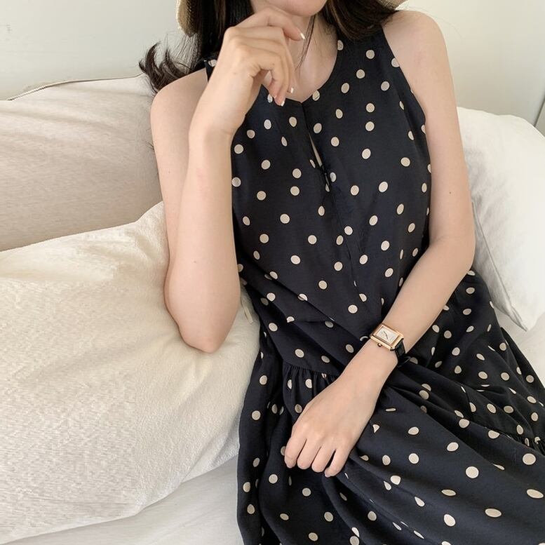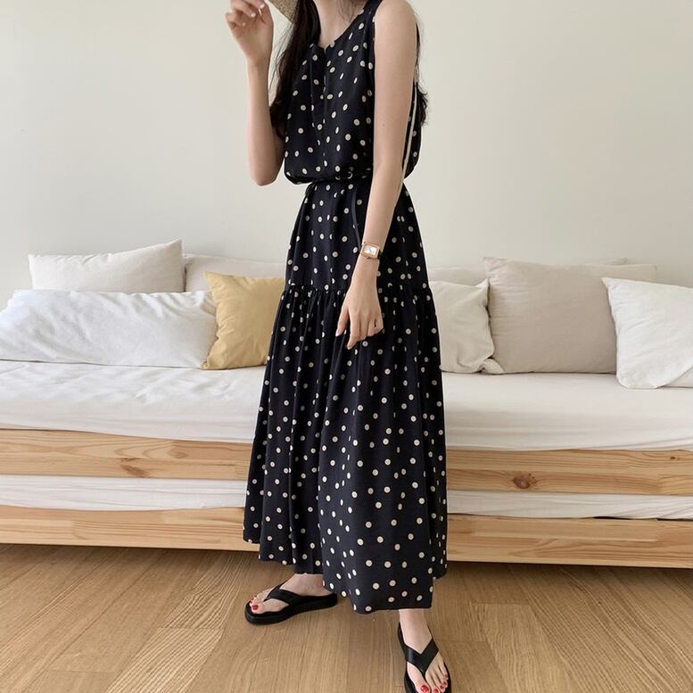 大人可愛いティアードデザインのドット柄ワンピース