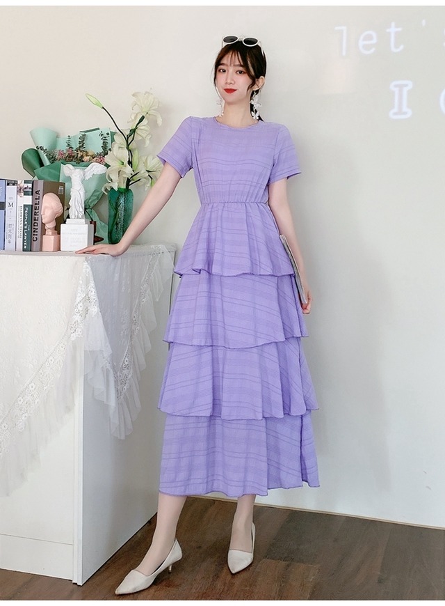 ワンピース 膝下 ミモレ ミモレ丈 ロング ロング丈 袖あり 半袖 Uネック フレア Aライン フリル かわいい 大人可愛い シンプル カジュアル 大人 おしゃれ お洒落 かっこいい こなれ感 ラフ 柄 チェック柄 夏 10代 20代 30代 レディース 女性用 OL 学生 デート お出かけ 公園デビュー 女子会 お泊まり 休日 普段使い 韓国 韓国系 オルチャン ファッション コーデ 楽ちん モテ 流行 色展開 白 ホワイト 黒 ブラック 赤 レッド 青 ブルー 緑 オレンジ ピンク ネイビー