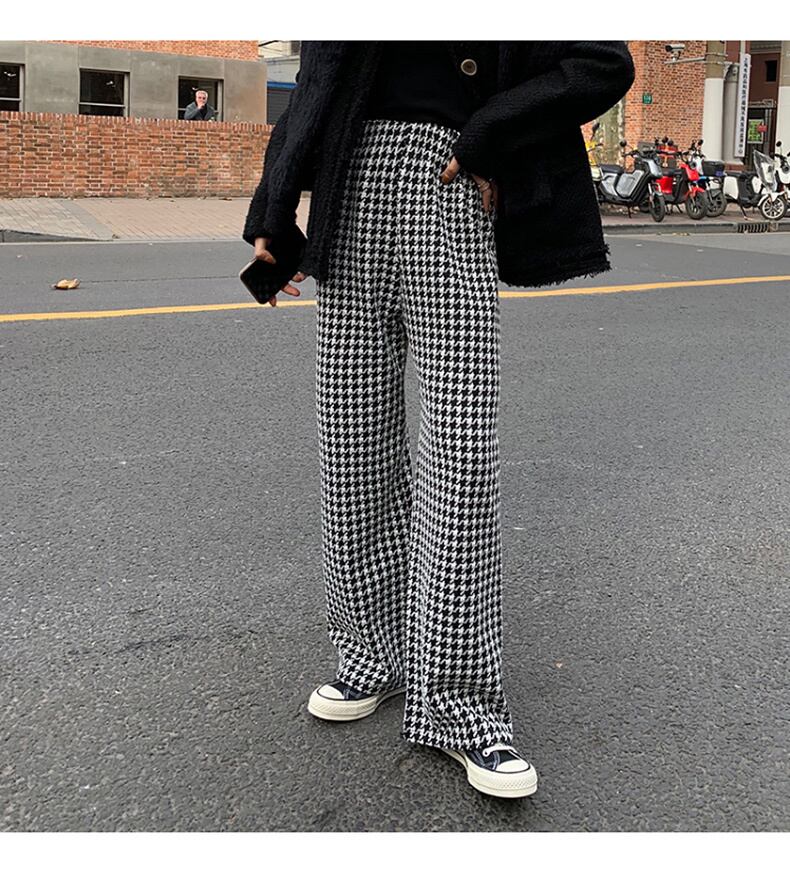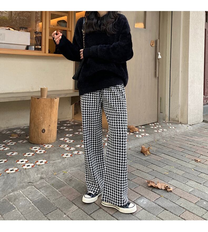 ボトムス パンツ ロング ロング丈 ストレート かわいい 大人可愛い シンプル カジュアル 大人 おしゃれ お洒落 かっこいい レトロ 大人可愛い 大人女子 ラフ 柄 千鳥格子 秋 冬 10代 20代 30代 40代 レディース OL 学生 デート お出かけ 公園デビュー 女子会 お泊まり 休日 着回し 普段使い 韓国 韓国系 オルチャン モテ サイズ XS S M L XL