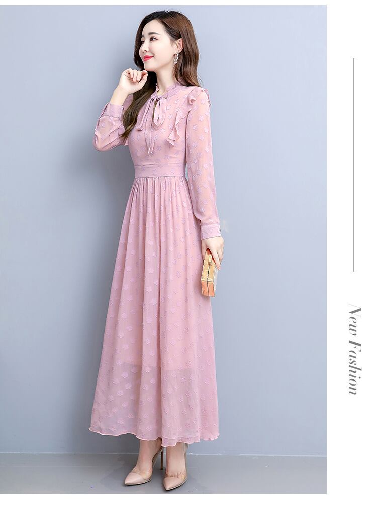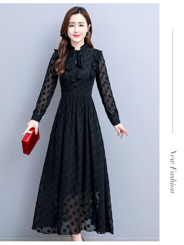 ワンピース 膝下 ロング ロング丈 袖あり 長袖 クルーネック フレア Aライン シフォン フリル リボン かわいい 大人可愛い きれいめ シンプル 大人 上品 おしゃれ お洒落 レトロ 大人可愛い 大人女子 こなれ感 ラフ 柄 ドット柄 春 夏 秋 冬 オールシーズン 10代 20代 30代 レディース OL 学生 デート お出かけ 公園デビュー 女子会 お泊まり 休日 着回し 普段使い 韓国 韓国系 オルチャン ファッション コーデ スタイル 楽ちん モテ サイズ M L XL 2XL 3XL