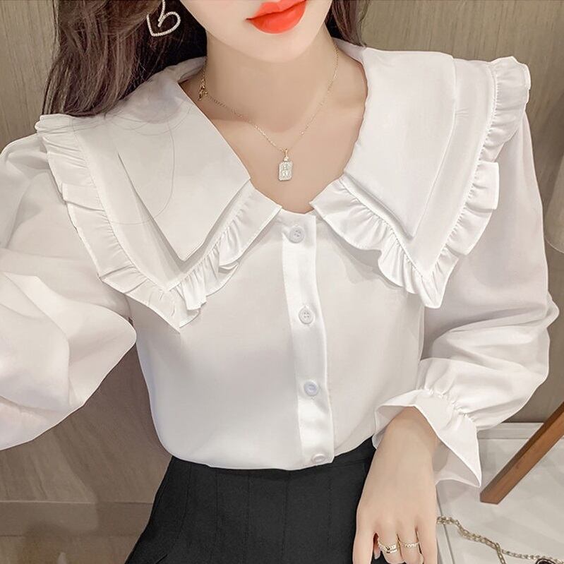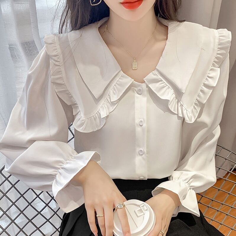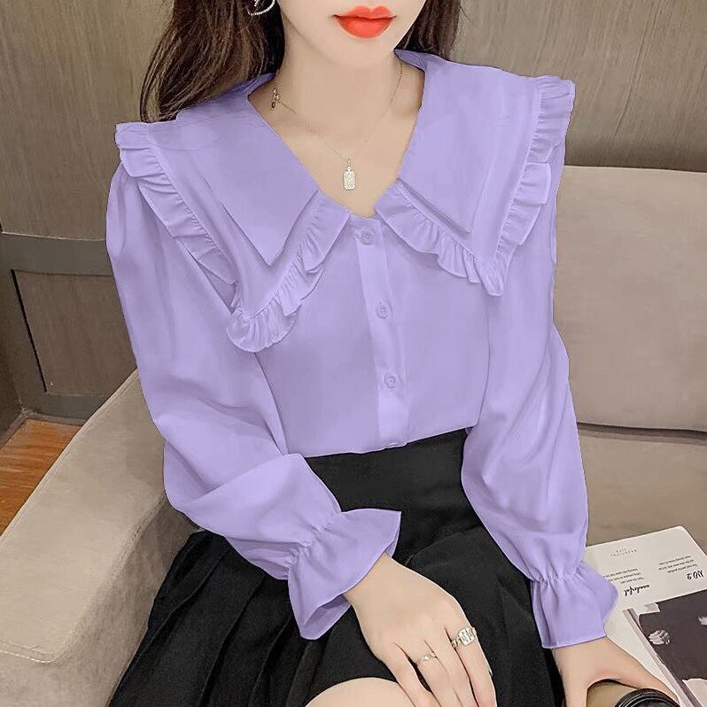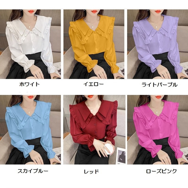 レディース フェミニン ドールカラー ビックカラー ダブルカラー トップス ブラウス ソリッドカラーシャツ キャンディスリーブ ゆったり フリルカラー Vネック 大人かわいい 甘い 新作 長袖 スタイリッシュ カジュアル エレガント 20代 30代 通勤 通学 学生 OL 細見え おしゃれ 体型カバー 着やすい スタイルUP 華奢見え ヤセ見え サマ見え こなれ感 スッキリ見え 多種類 M L XL 2XL 3XL 4XL 白 紫 黄 青 ピンク 赤