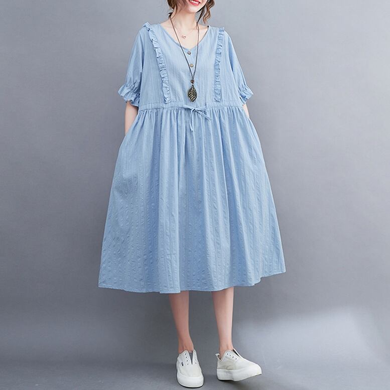ワンピース レディース フリルワンピース ロングワンピース 大判 フレアワンピース ドレス Vネック 半袖 フリルスリーブ パフスリーブ ひざ下丈 水色 黄色 緑 紺 ブルー イエロー グリーン ネイビー 大人可愛い きれいめ 上品 エレガント フォーマル ガーリー ルーズ 春 夏 秋 冬 二次会 オフィス OL 通勤 学生 通学 デート お出かけ パーティー 体型カバー トレンド オーバーサイズ ゆったり インスタ映え