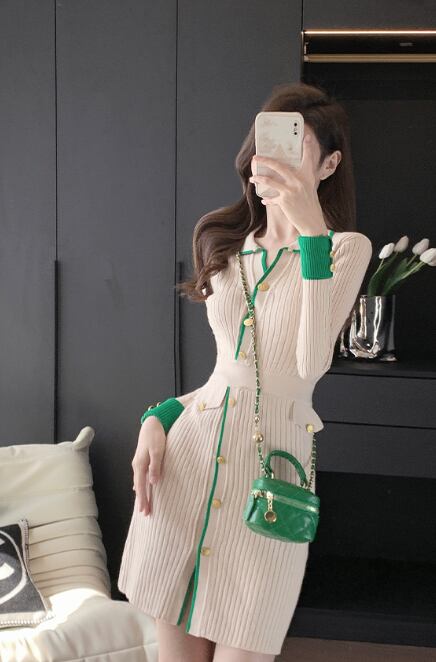 ワンピース レディース ニットワンピース ミニワンピース ミニワンピ ミニ ミニ丈 ショート ショート丈 袖あり 長袖 Vネック 襟付き レギュラーカラー スリム タイト 細身 ストレート Iライン パイピング リブ 前開き ウエストゴム リブニット 伸縮性 ボタン ニット 薄手 かわいい 大人可愛い きれいめ カジュアル 大人 上品 おしゃれ お洒落 レトロ バブリー 大人女子 スポーティー S M L レトロカラー ホワイト グリーン オフホワイト バイカラー 無地 秋 冬 20代 30代 スポーツ