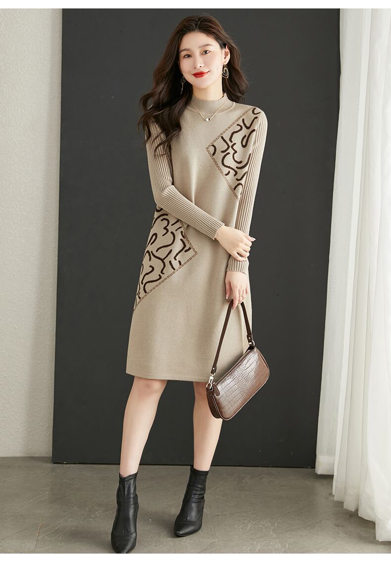 エレガントな柄が印象的なニットワンピース