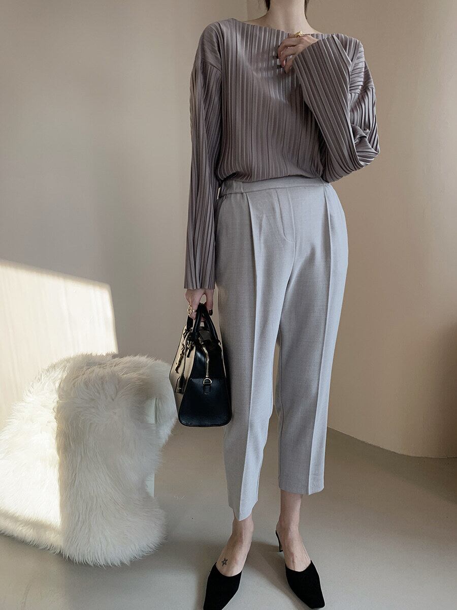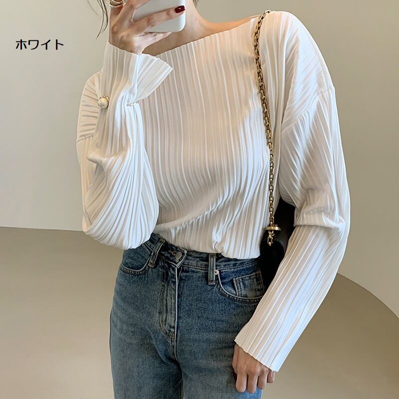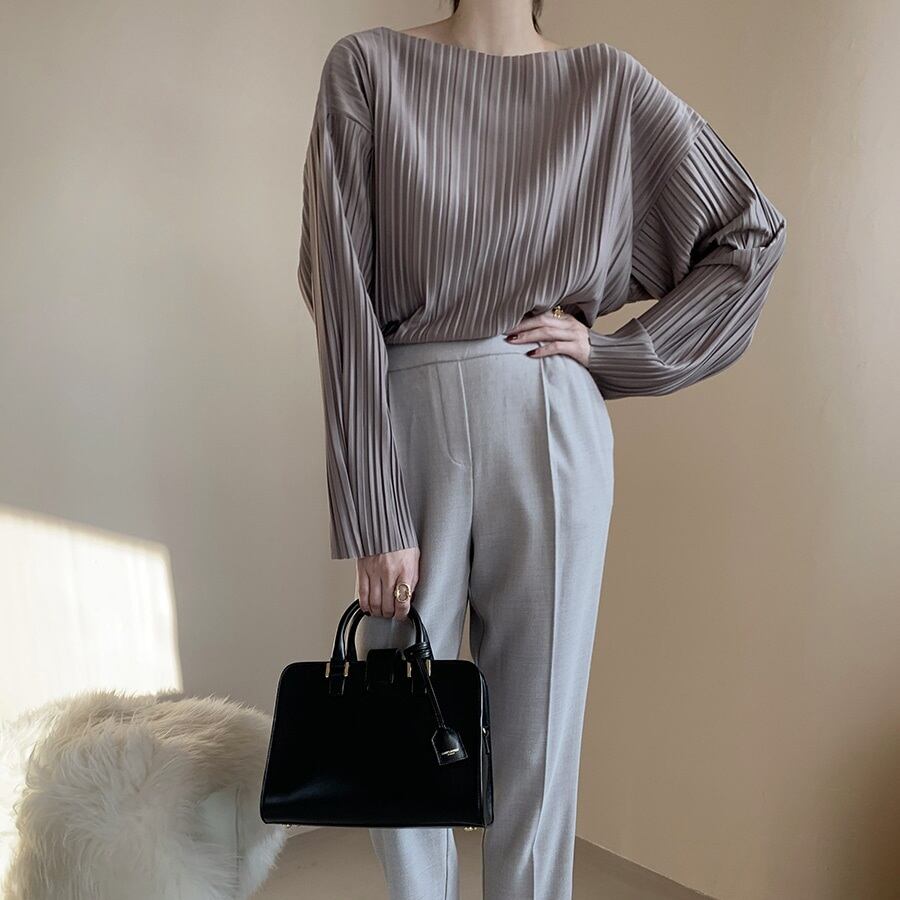 ブラウス プリーツデザイン 長袖 シャツ 韓国 秋 ラウンドネック ルーズ ソリッドカラー 大人女子 上品 ハイセンス 高級 ハイエンド ゆったり 韓国 ラフ レディース フォーマル カジュアル 好印象 体型カバー 着やすい 華奢見え ヤセ見え スマート スッキリ見え サマ見え こなれ感 エレガント10代 20代 30代 40代 フェミニン 通勤 通学 学生 OL オフィス モテコーデ おしゃれ お出かけ 細見え スタイルUP ワンサイズ グレー ホワイト シアン