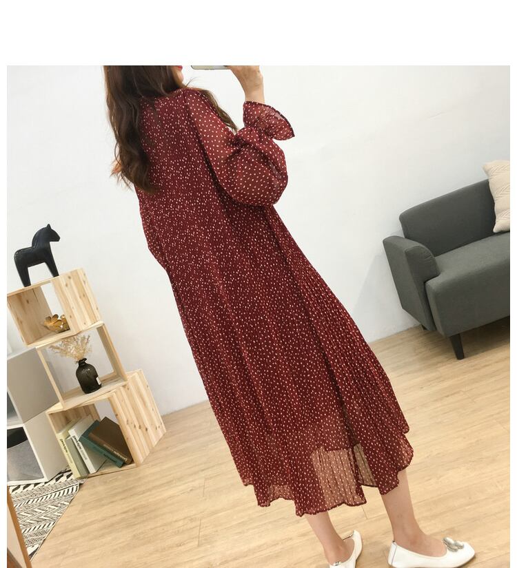 ワンピース 膝下 ミモレ ミモレ丈 袖あり 長袖 Vネック ストレート シフォン かわいい 大人可愛い きれいめ シンプル カジュアル 大人 上品 おしゃれ お洒落 アジアン 大人可愛い 大人女子 こなれ感 ラフ 柄 ドット柄 春 夏 秋 10代 20代 30代 レディース OL 学生 デート お出かけ 公園デビュー 女子会 お泊まり 休日 パーティー 普段使い 韓国 韓国系 オルチャン モテ サイズ L XL 2XL 3XL 4XL 黒 ブラック 赤 レッド