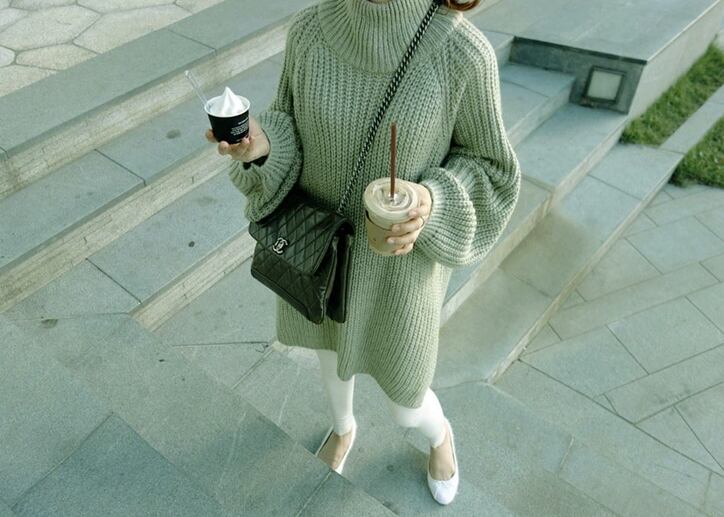 ボリュームスリーブとハイネックがおしゃれなアクセントです。